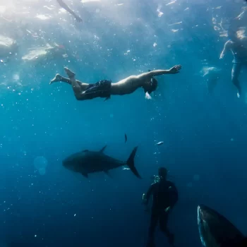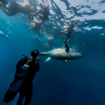 Una aventura donde tu serás el protagonista, porque podrás observarles en su medio mientras les das de comer y nadar entre cientos de atunes rojos salvajes.